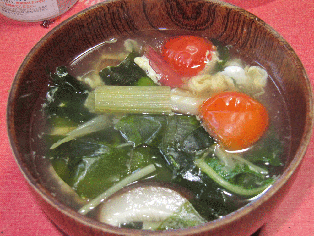 あまり卵が目立っていませんが卵とじスープになりました。