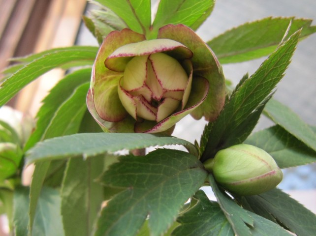 家にある、ベランダクリスマスローズのつぼみもだいぶほころびはじめました。