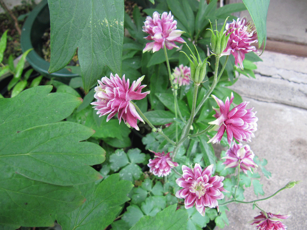 現在「オダマキ」開花中。満開を過ぎ中には種を作っているのもの