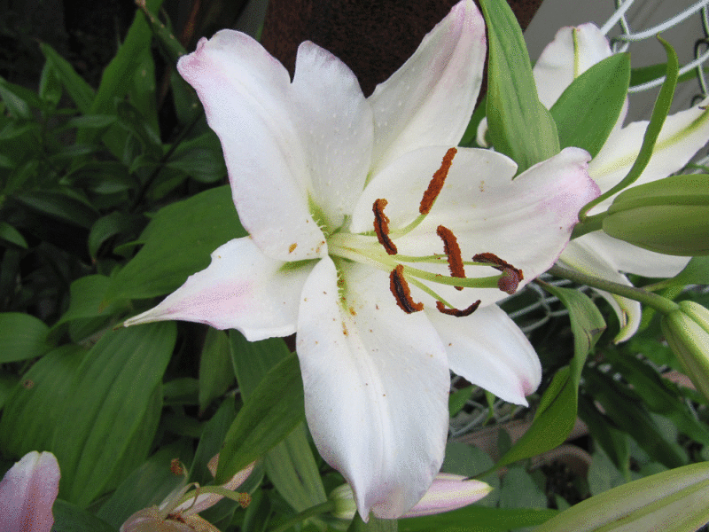 白のカサブランカにうっすらとピンク色がのってきてしまいました。