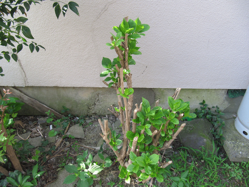 続いては初めて強剪定をした「紫陽花」2株ですが
