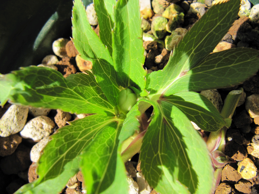 クリスマスローズの花芽を発見。