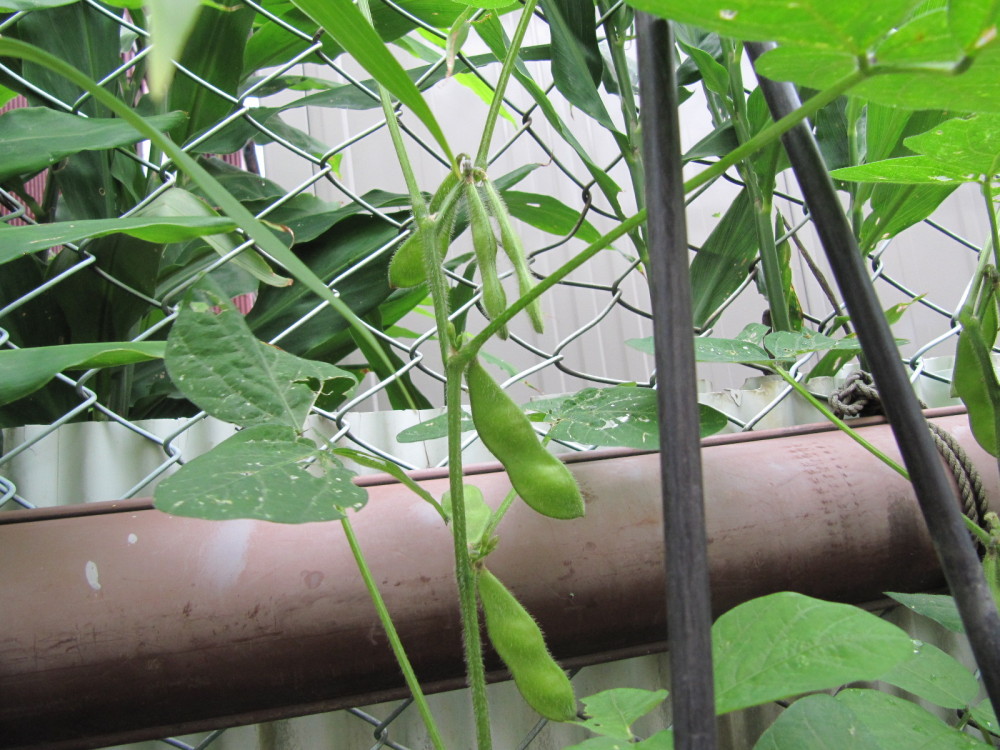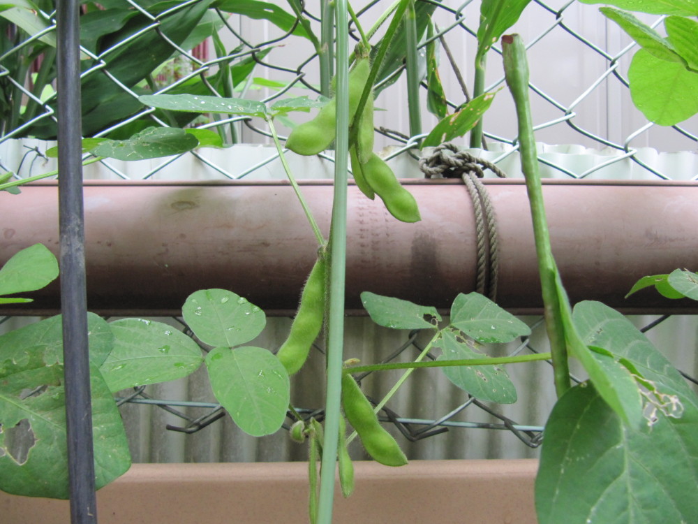 次は枝豆。 花を見ずに実をつけてしまいました。