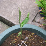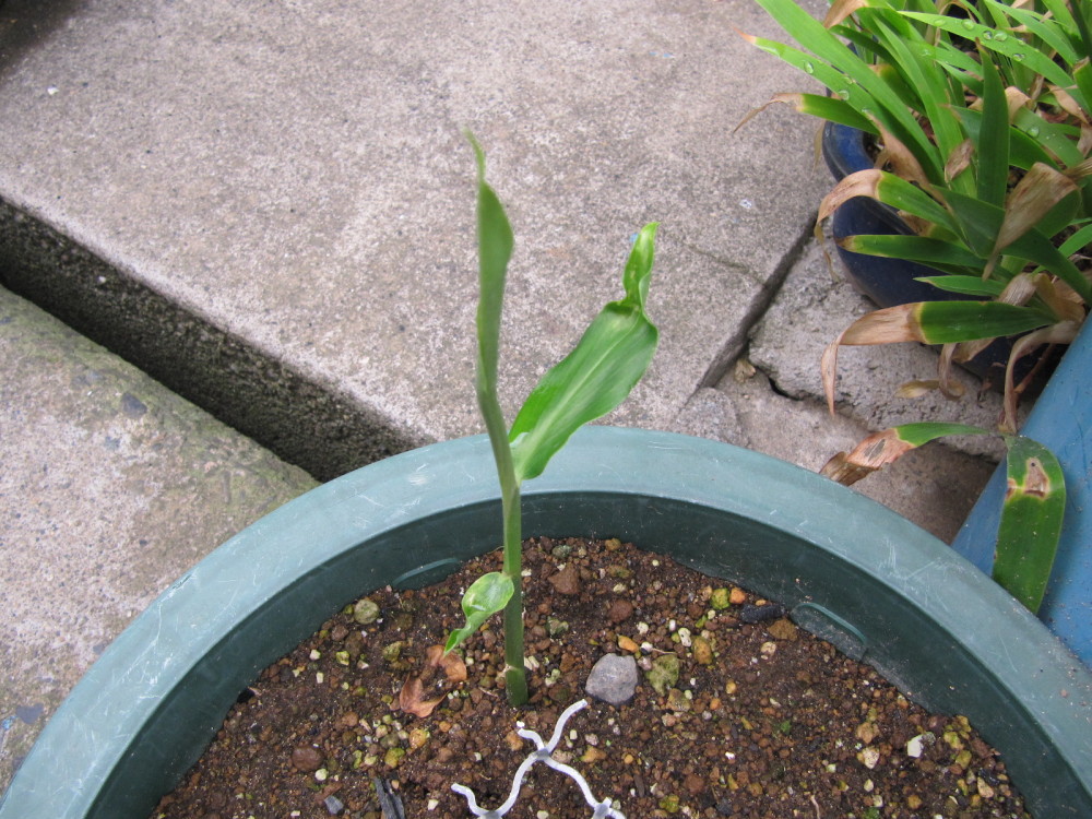 まずは生姜です。ひょろひょろとで出てきているところです。