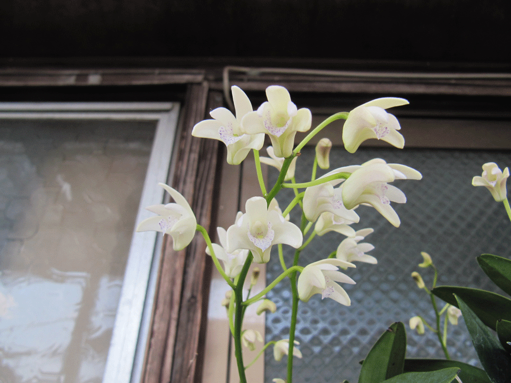 ベランダで咲いている「シンビジウム」「君子蘭」「ギンギアナム」とクリスマスローズの世話を少し
