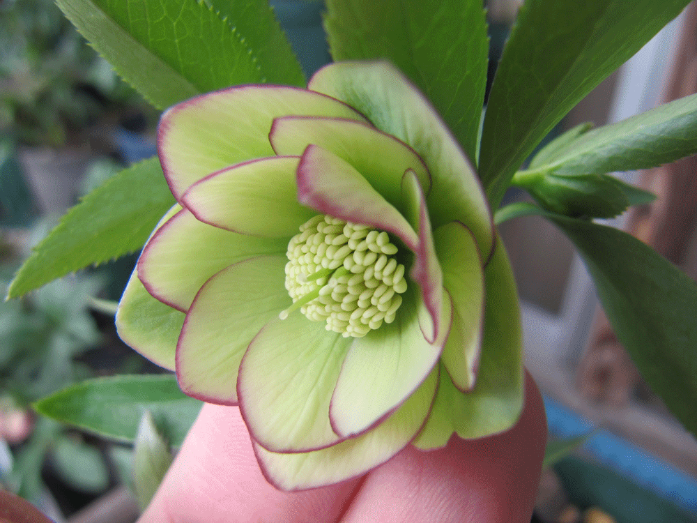 ベランダのクリスマスローズに固形肥料を。本当は3月中にしたかった。