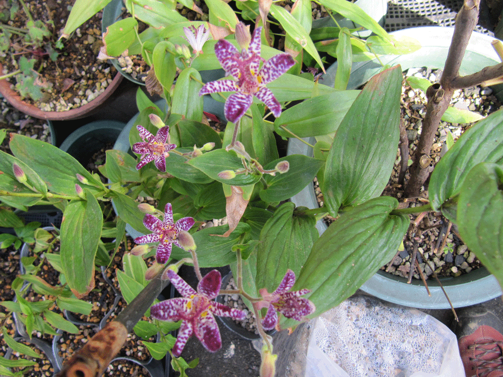 ジョウロウホトトギス(垂れ下がるタイプ)はまだ開花していませんし