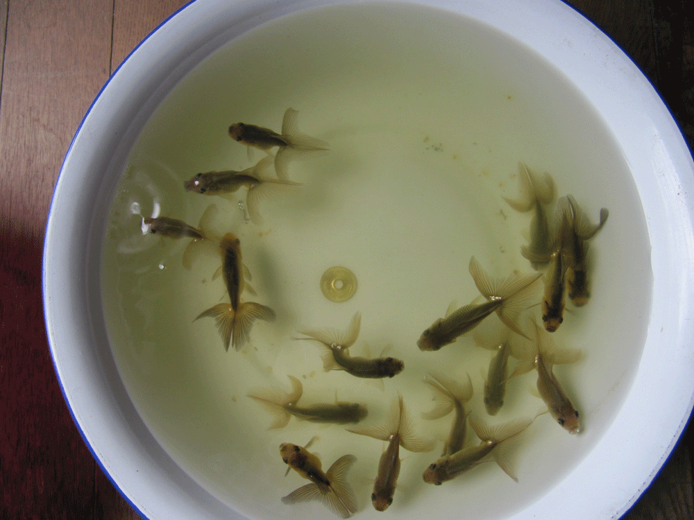 という光景を度々見てきたので1舟に3匹ずつにしました。