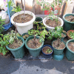 大体の作業を書きますと雑草抜きと手前の4鉢と右奥の1鉢の木は「牡丹」ですが