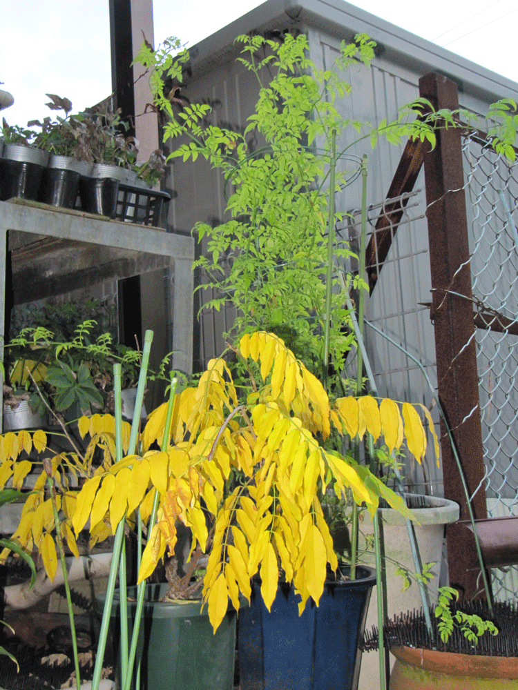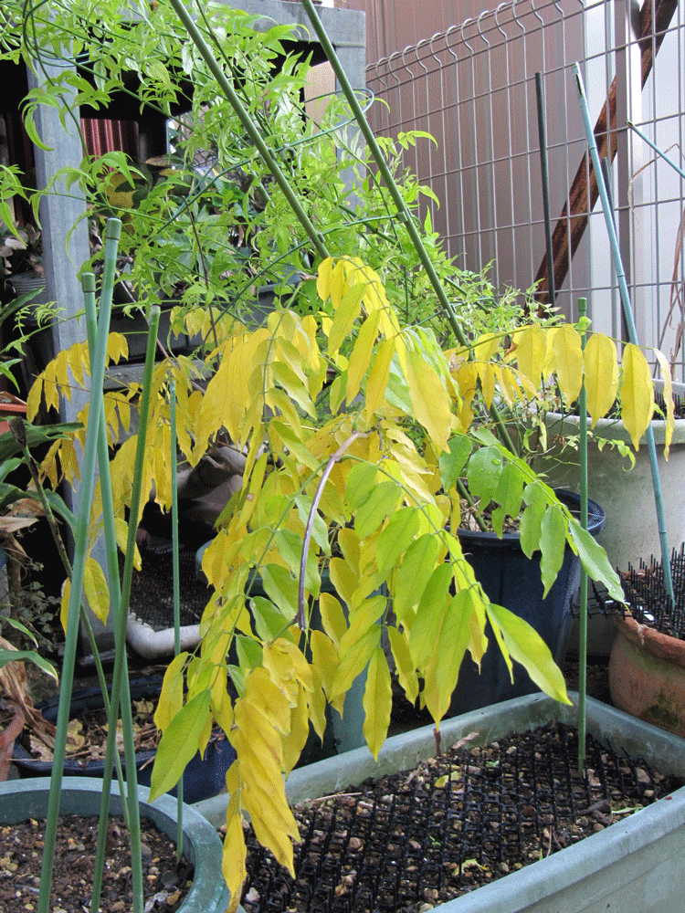 続いては藤の黄葉を。ちなみに後ろにあるのはハゴロモジャスミンです。