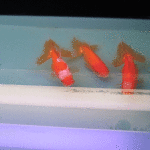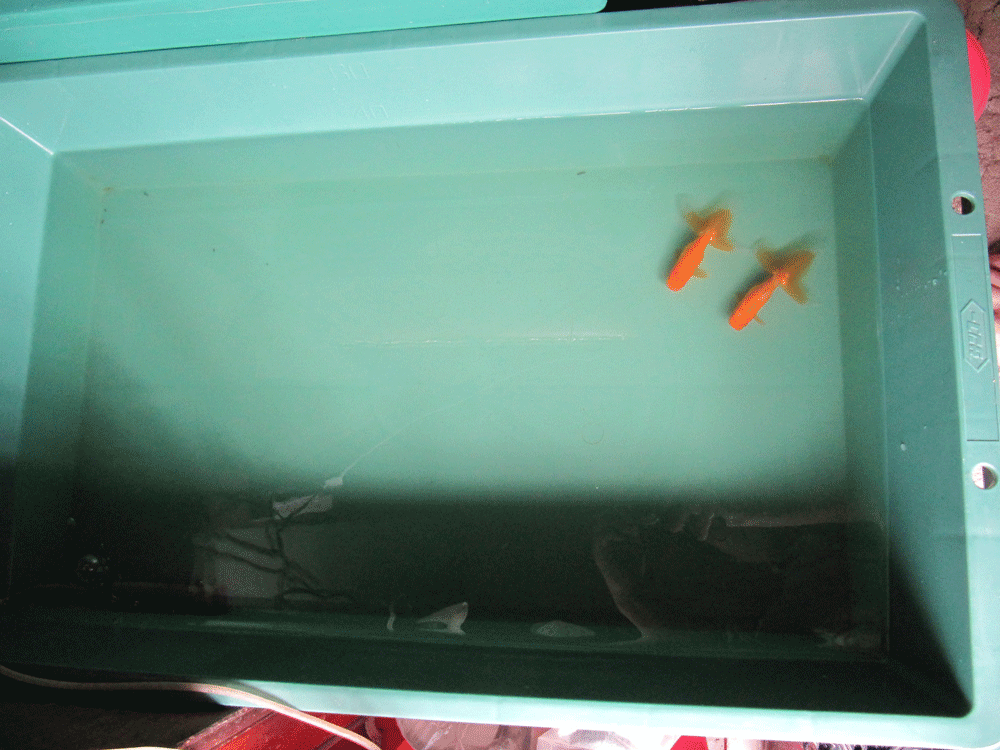 それぞれのスペースに入っている金魚を撮るとこんな感じです。