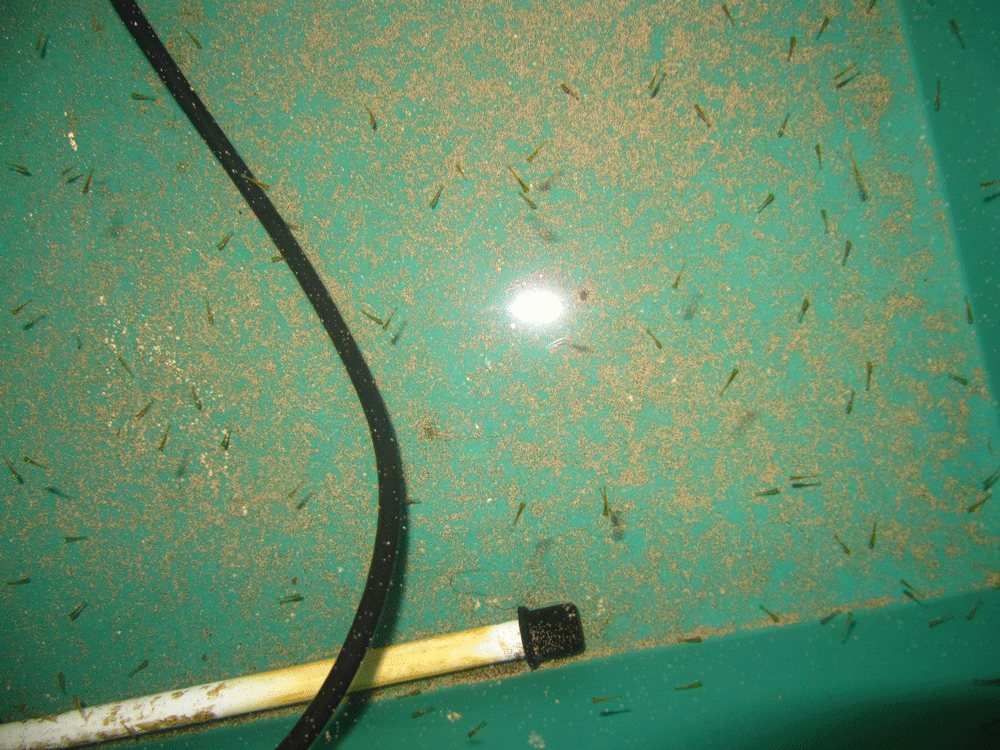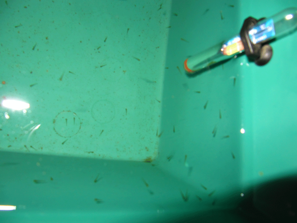 今日残念ながら1匹死んでいる稚魚を発見しましたが