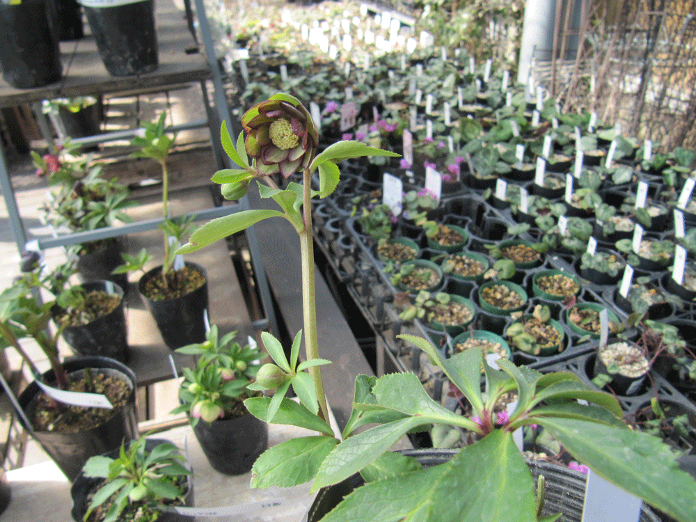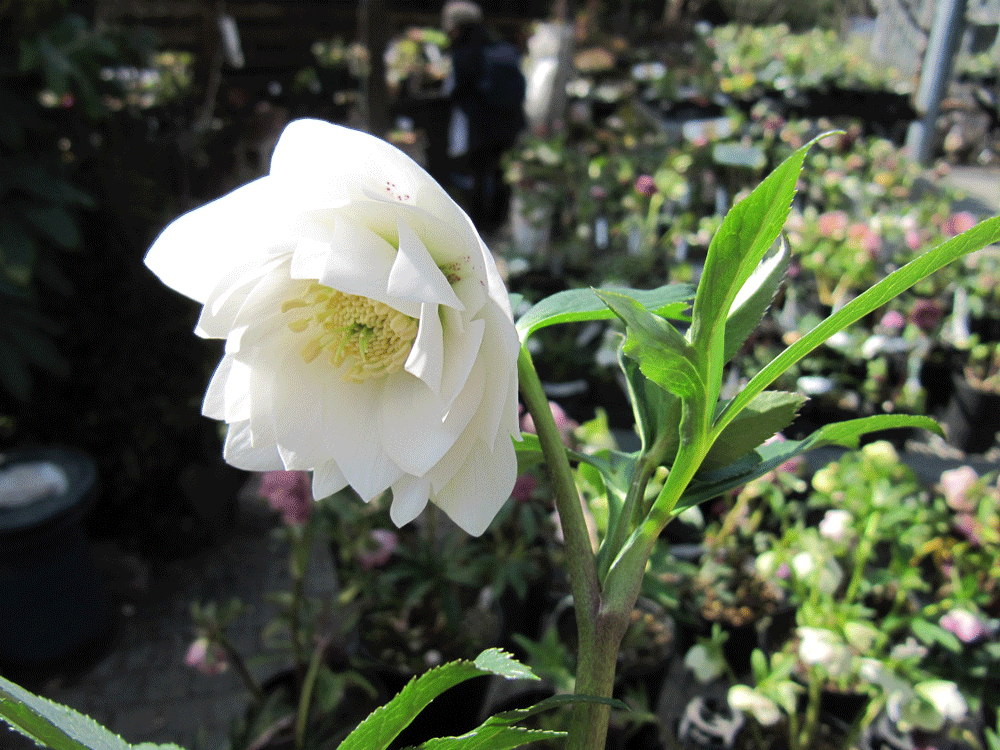 純白のクリスマスローズでほんの少しスポットが有りの株と