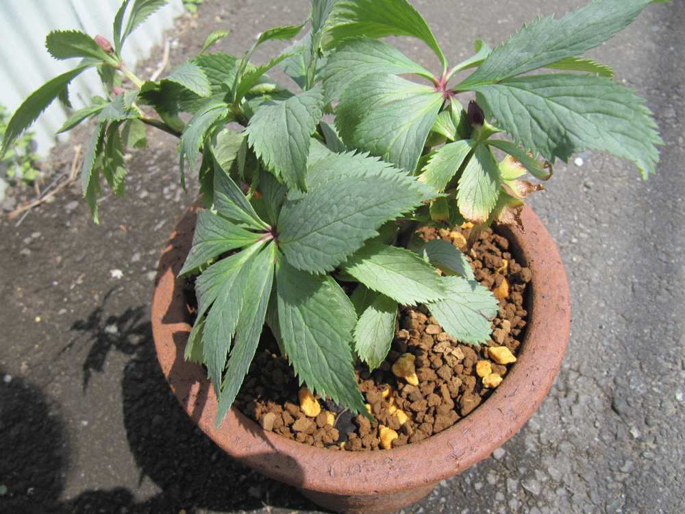 他のクリスマスローズより明らかに水持ちの良い土にしています。