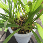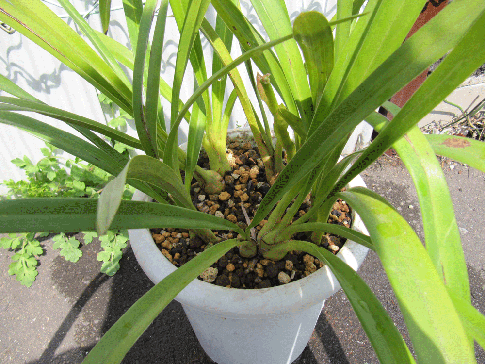 お隣さんからも古い土で構わないと言う事で「シンビジウム」の植替えを