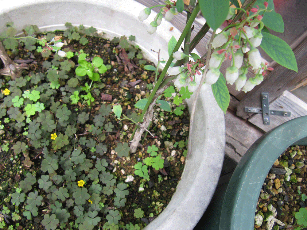 その他ブルーベリーは違う株も花が咲き、ある1株の牡丹には新芽が沢山。
