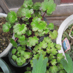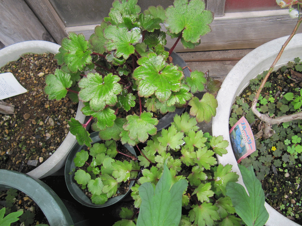 左はベランダ、真中と右は玄関横にあり株分け品なので元々は同じですが