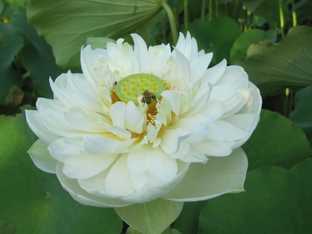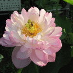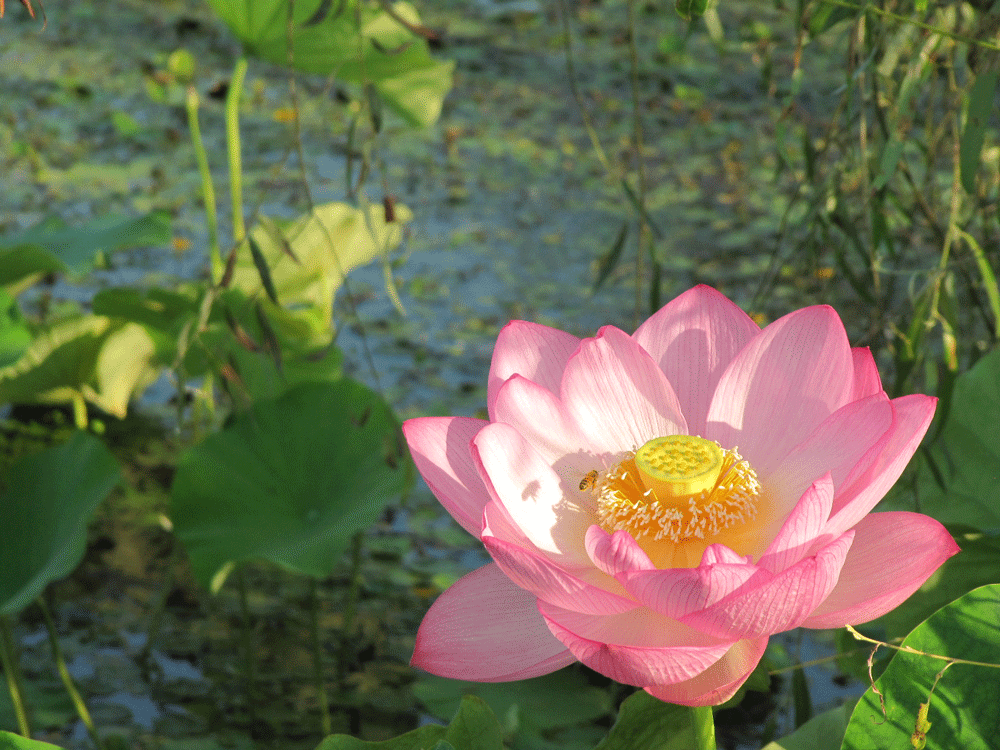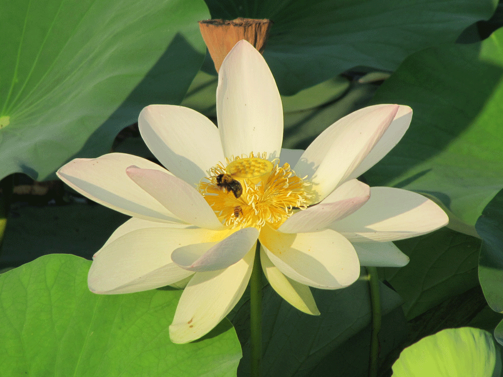 蓮の蜜集めに一生懸命で人間などどこ吹く風です。