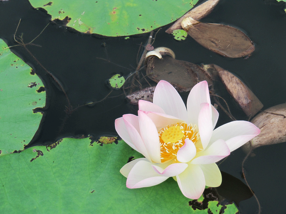 難点は水の中では分けられていますが仕切りが蓮の葉に覆われていて境目付近に