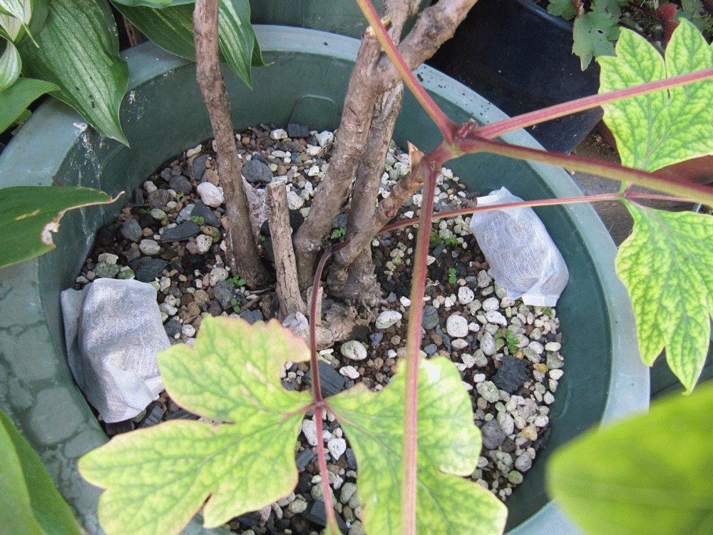肥料についてはこれで終わりなのですが5鉢ある牡丹のうち