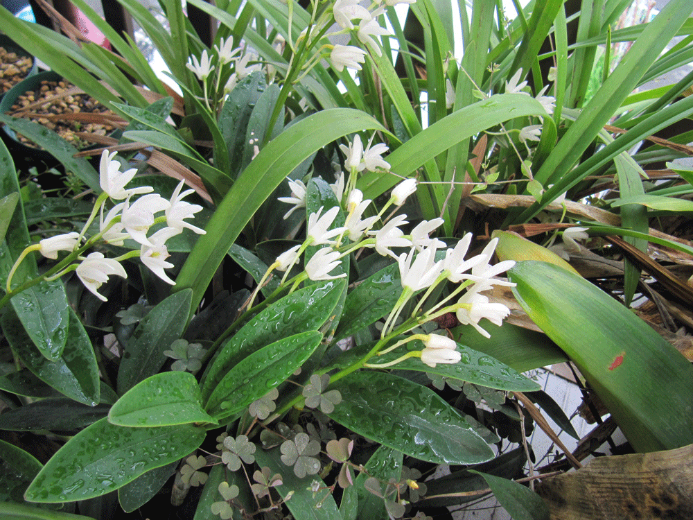 2鉢あり後ろにあるシンビジウムが君子蘭が邪魔して日当たりが悪いためか