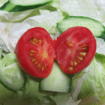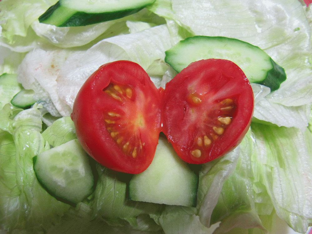 食べる直前に割れてしまっていたトマトを半分にカットして
