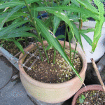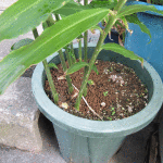 右の写真の鉢にあります。今回収穫の株元をアップ