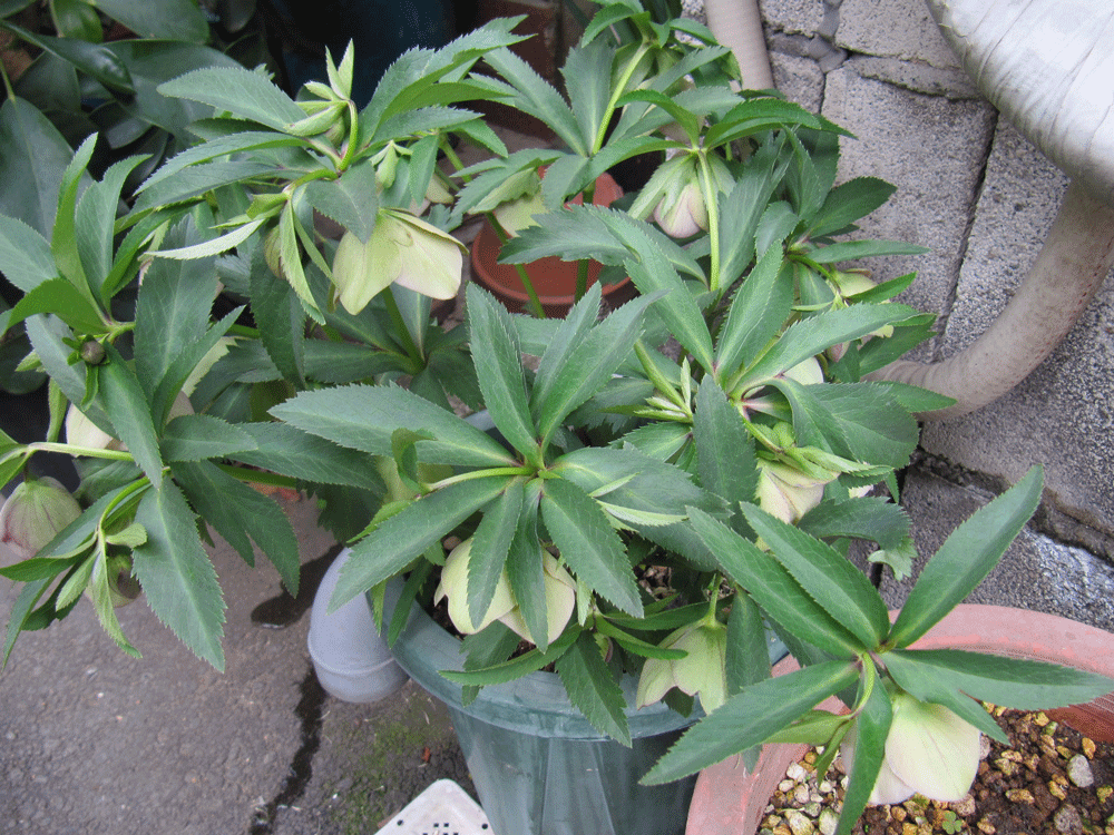このクリスマスローズは外に置いてあり遮光ネット等の日差し対策を