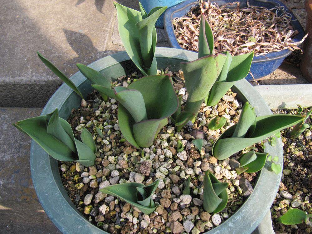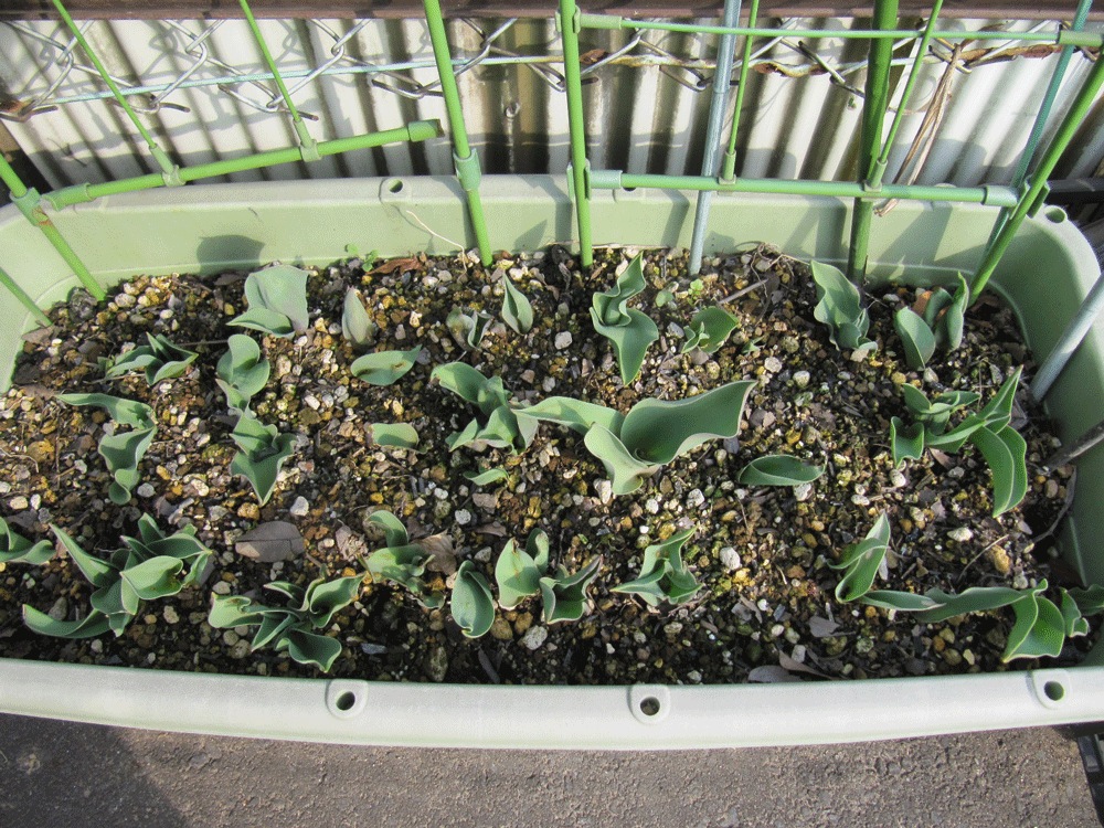 続いては「チューリップ」。水遣りの度にこんなに多くの球根を1つの容器に