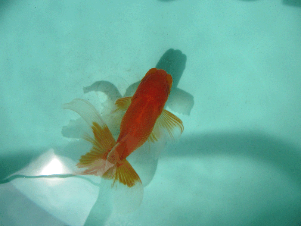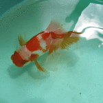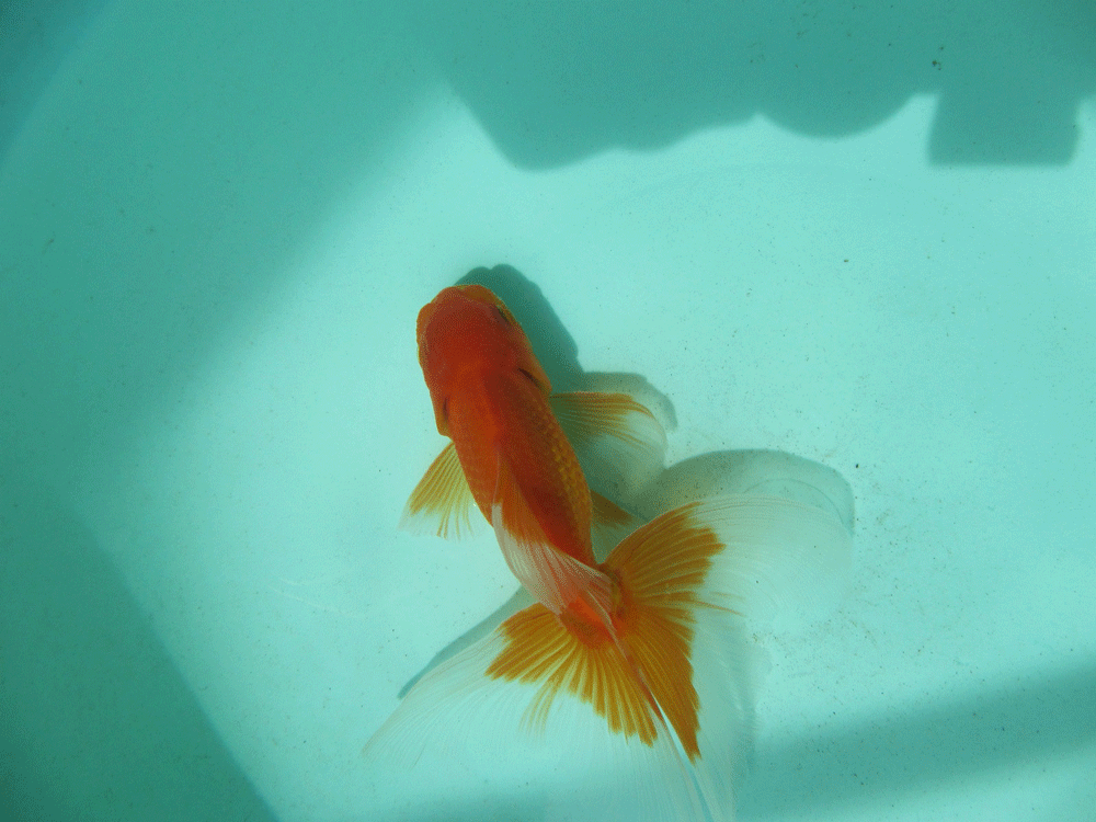 金魚を戻し洗面器にある緑水を少々。いつもこんな感じです