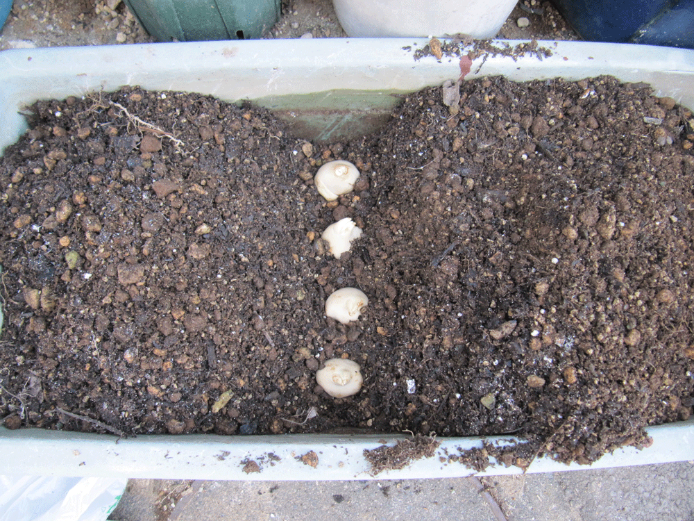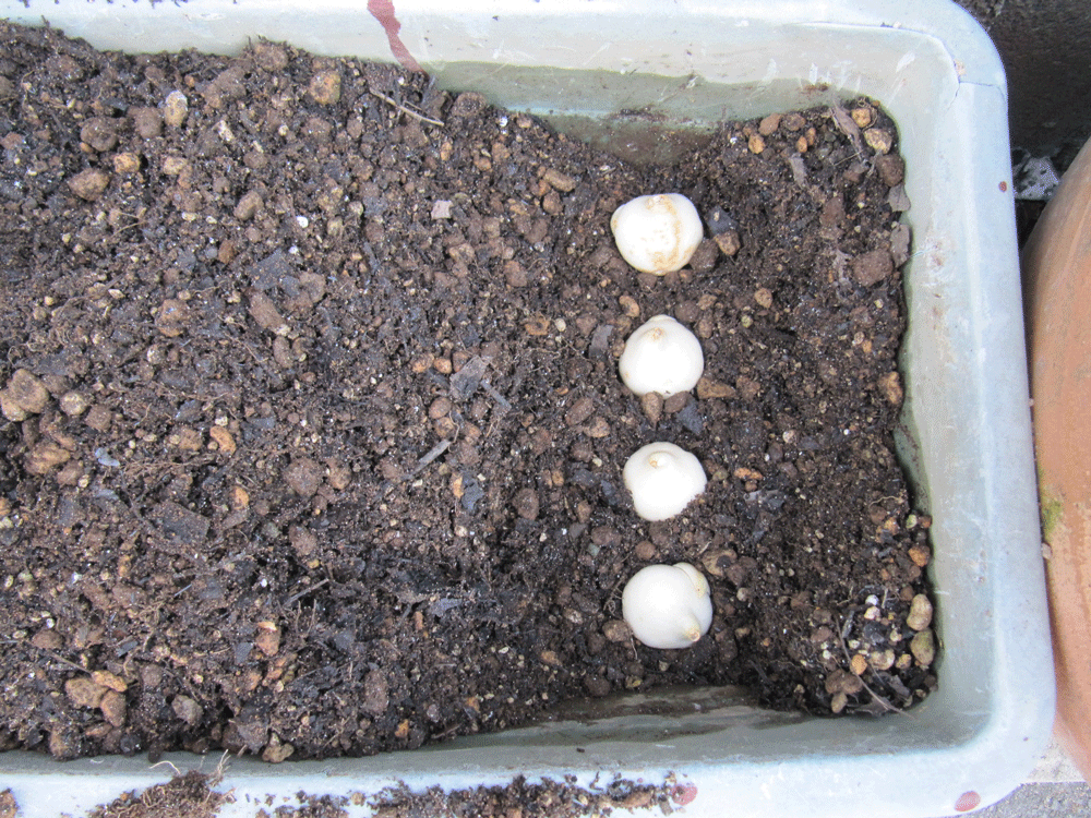 数年前に球根の皮をむいた方がスムーズな発根を促す事が出来る